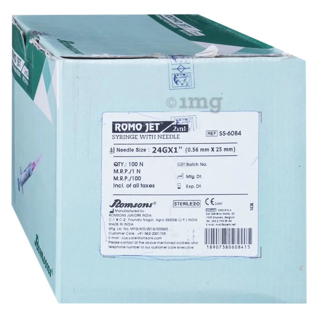 Order Romsons Romo Jet Syringe with 2ml Needle - Pack of 100 for precise injections. High-quality materials ensure reliability. Purchase now