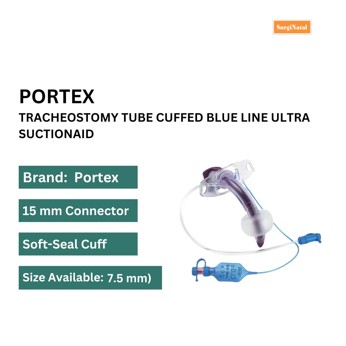 Buy Tracheostomy Tube Cuffed Blue Line Ultra Suctionaid -7.5Mm