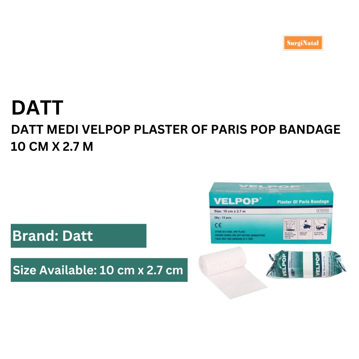Datt Medi Velpop Plaster of Paris Bandage 10 cm x 2.7 m | POP Bandage | 1 Piece