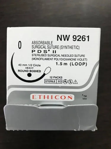 Ehicon PDS II Sutures USP 0, 1/2 Circle Round Body Heavy NW9261