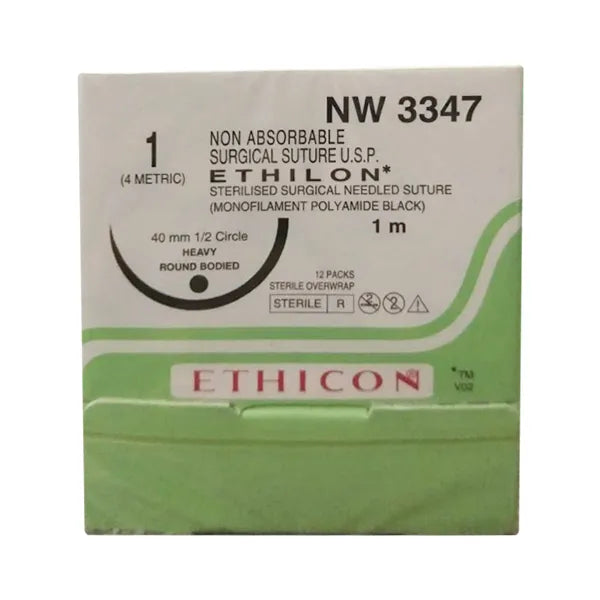 Ethicon Ethilon Sutures USP 1, 1/2 Circle Round Body Heavy NW3347