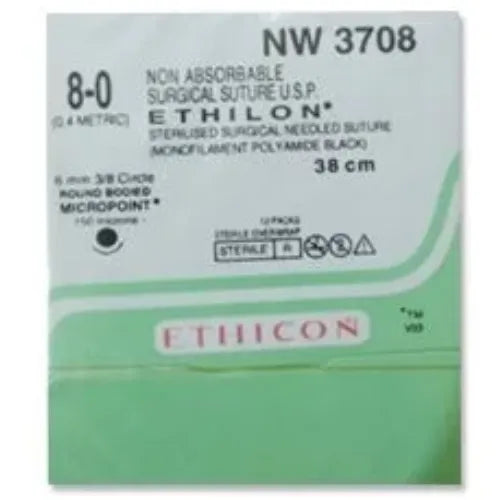Ethicon Ethilon Sutures USP 8-0, 3/8 Circle Round Body Micropoint NW3708 -12 Foils