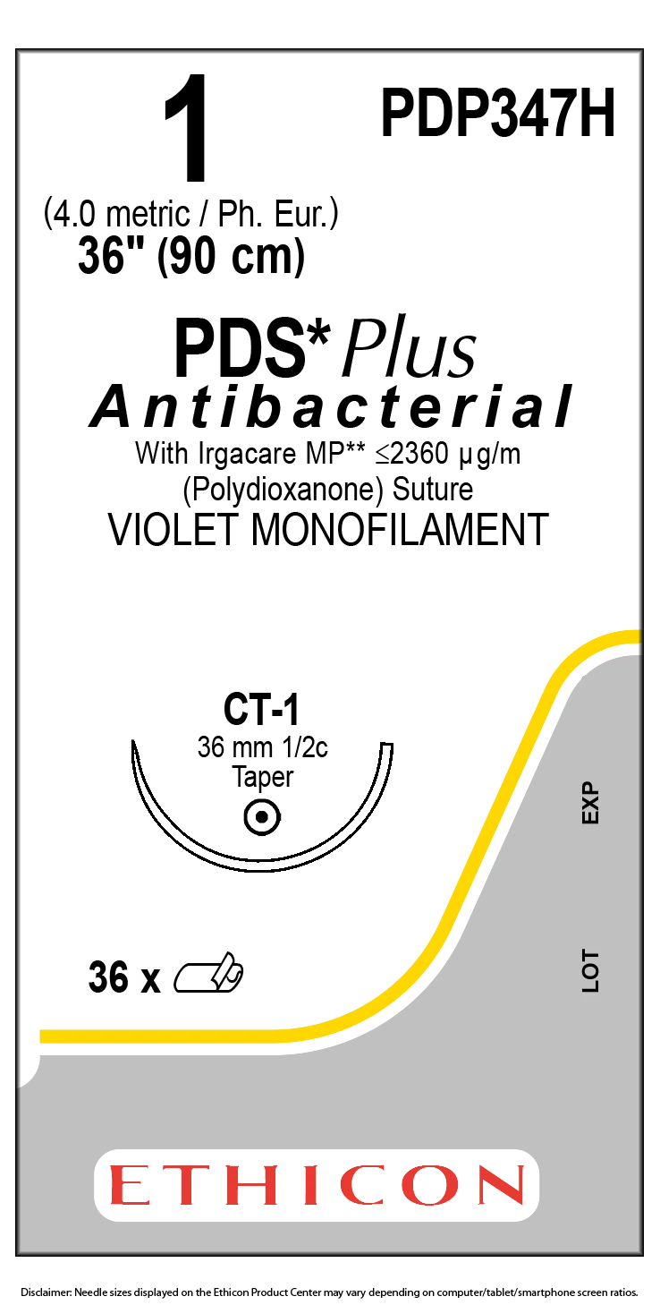 Ethicon PDS Plus Sutures USP 1, 36.4 mm 1/2 Circle Taper Point CT-1 - PDP347H