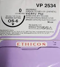 Ethicon Vicryl Plus Sutures USP 0, 1/2 Circle Reverse Cutting - VP2534