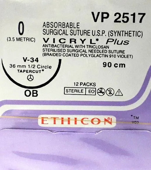Ethicon Vicryl Plus Sutures USP 0, 1/2 Circle Tapercut V-34 OB - VP 2517
