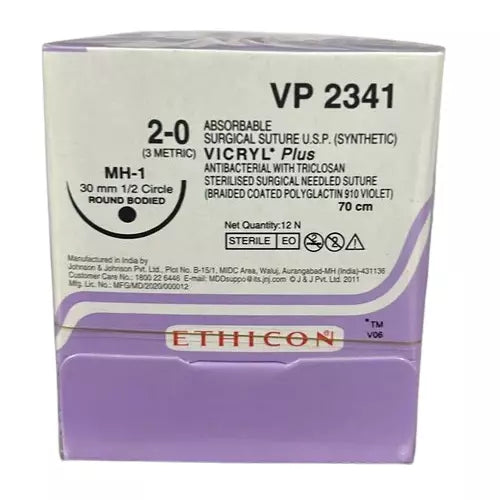 Ethicon Vicryl Plus Sutures USP 2-0, 1/2 Circle Round Body - VP 2341P