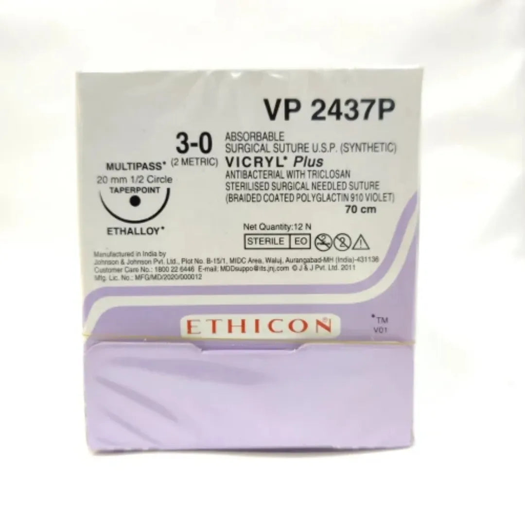 Ethicon Vicryl Plus Sutures USP 3-0, 1/2 Circle Round Body - VP2437P