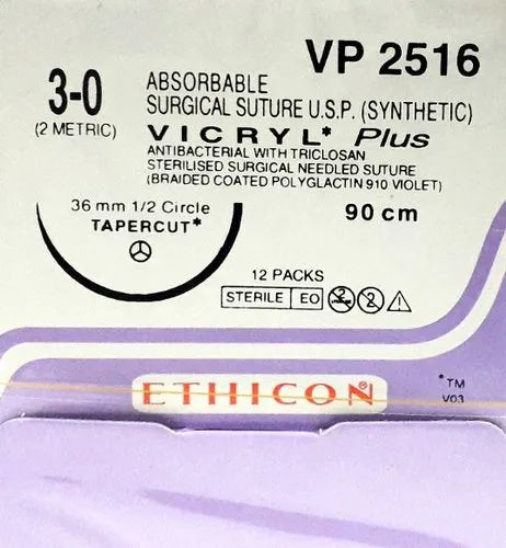 Ethicon Vicryl Plus Sutures USP 3-0, 1/2 Circle Tapercut - VP 2516P