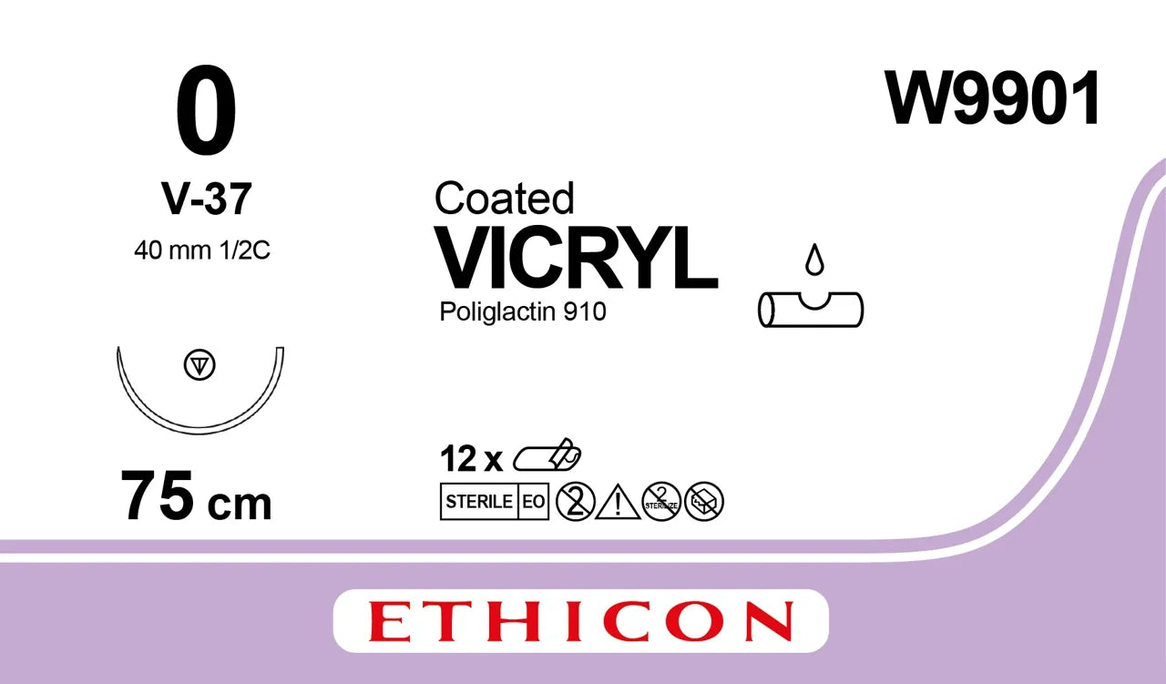 Ethicon Vicryl Sutures USP 0, 1/2 Circle Tapercut V-37 - W9901