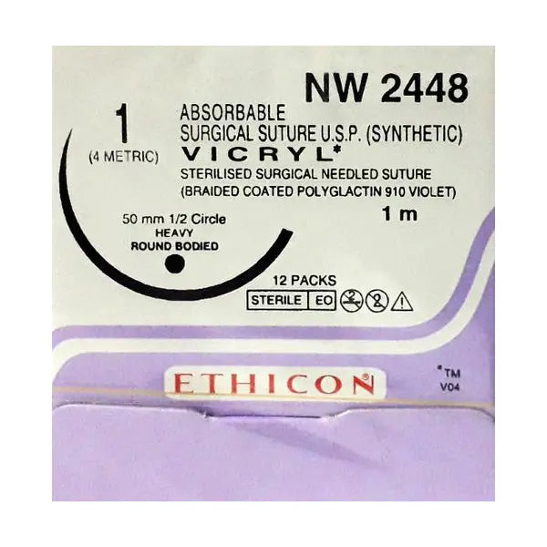Ethicon Vicryl Sutures USP 1, 1/2 Circle Round Body Heavy - NW2448P