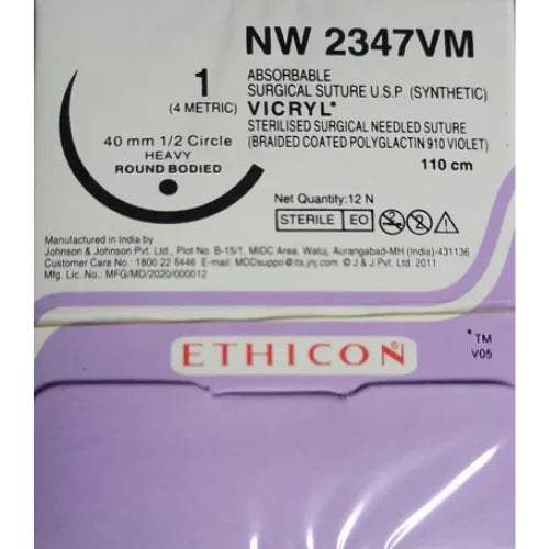 Ethicon Vicryl Sutures USP 1, 1/2Circle Round Body Heavy NW 2347VM