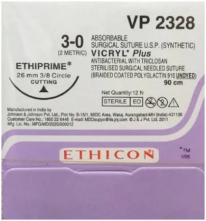 Ethicon Vicryl Sutures USP 3-0, 3/8 Circle Cutting Ethiprime - NW 2328
