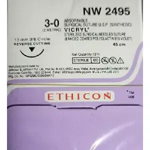Ethicon Vicryl Sutures USP 3-0, 3/8 Circle Reverse Cutting - NW2495