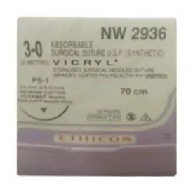 Ethicon Vicryl Sutures USP 3-0, 3/8 Circle Reverse Cutting PS-1 - NW2936