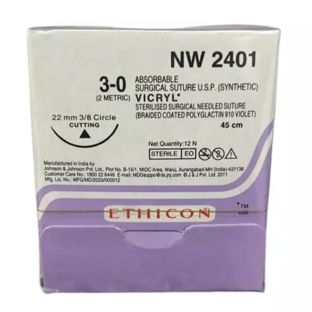 Ethicon Vicryl Sutures USP 3-0, 3/8 Circle Round Body - NW2401
