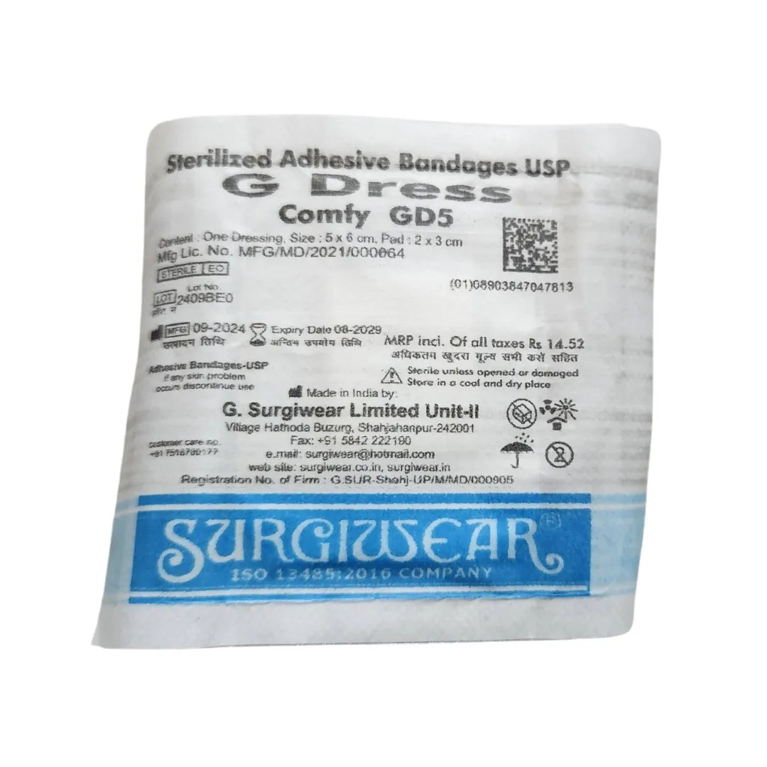 Surgiwear G-Dress Comfy 5 Bandage G-Dress is a ready-to-use wound dressing that has been sterilized and has a non-stick wound pad. G-Dress Comfy 5 is manufac