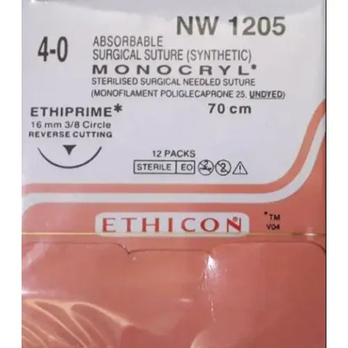 Monocryl Sutures USP 4-0, 3/8 Circle Reverse Cutting Ethiprime NW1205