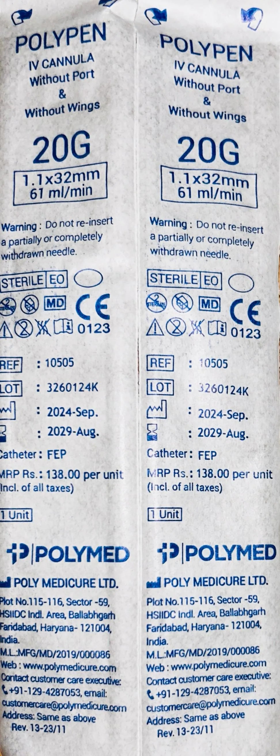 Polymed Polypen Iv Cannula Without Port & Without Wings (Similar to Jelco)